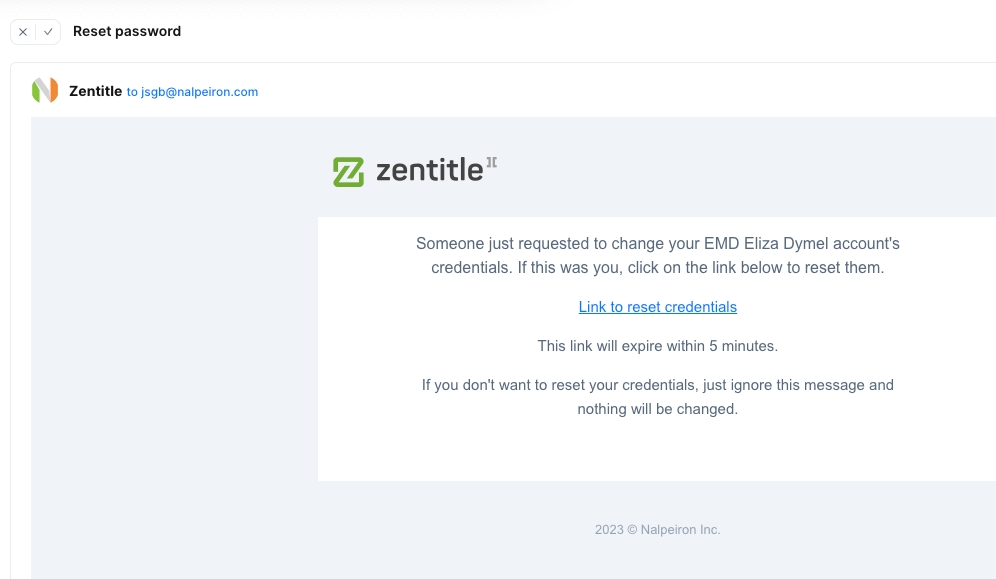 Click the Link to reset credentials in the email.