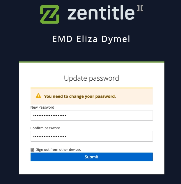Your password gets updated, and you can sign in with the new details.