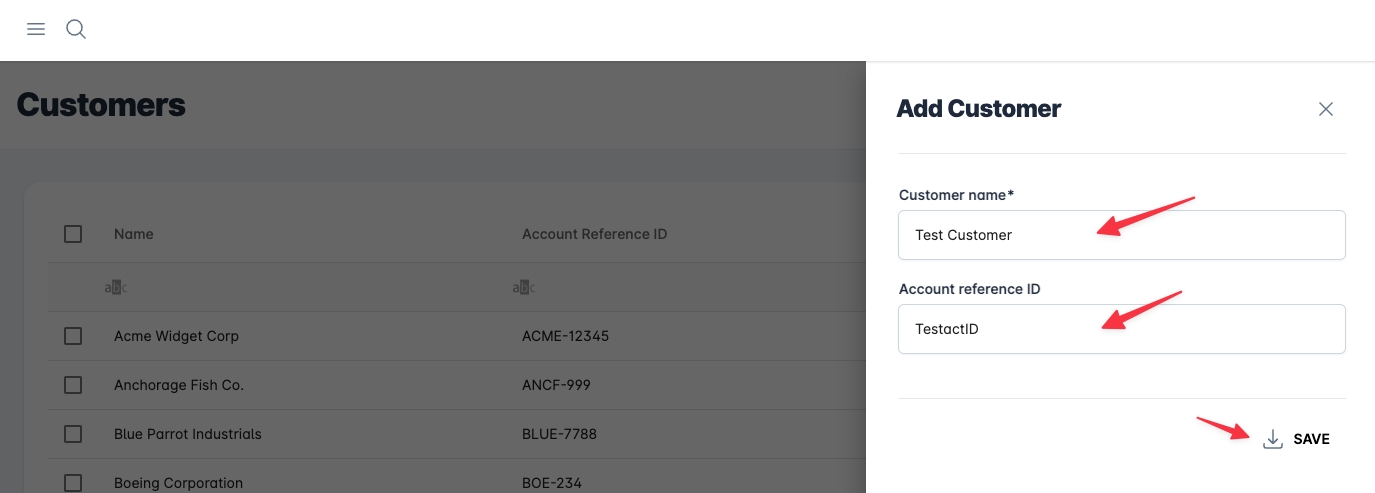 Optionally, add an "Account reference ID," which is useful for connecting to a CRM or external system for more data on the customer and system connectivity.