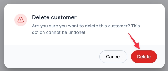 As this customer has connected objects below it, you must confirm with the three radio boxes and a text input of the name to delete, complete those, and then select delete.